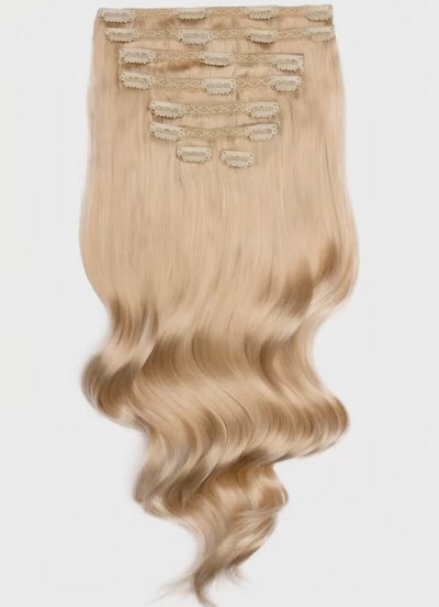 Add instant length, volume, and glamour with our premium 16 inch Full Volume Clip-In Hair Extensions in Light Ash Blonde. Crafted from 100% Remy human hair, these extensions are soft, silky, and blend beautifully with your natural hair for a flawless finish.