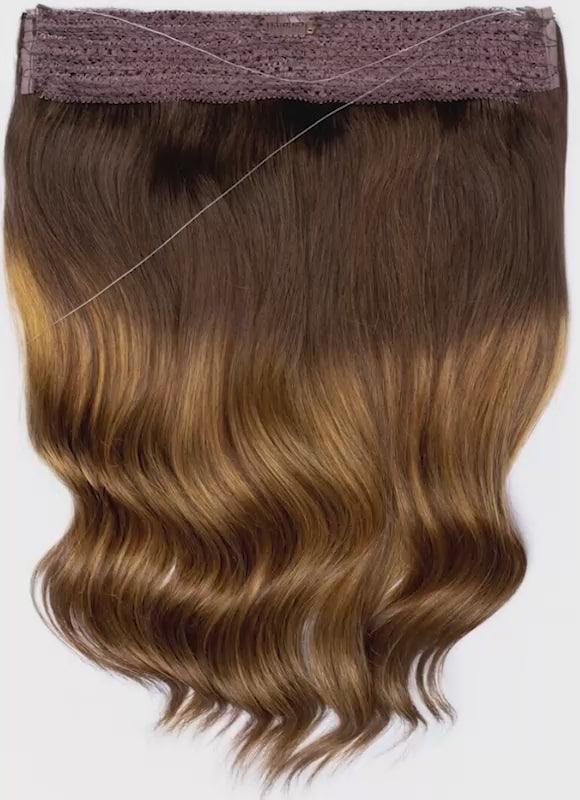 16 inch Invisible Wire Hair Extensions Dark & Light Brown Balayage