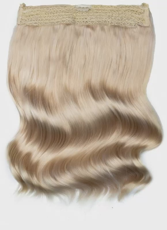 The one piece Halo-style hair extension is designed for quick and easy application — taking about 30 seconds to slip on. Its adjustable, invisible wire ensures a secure fit for any head size, providing the equivalent of a full head of hair. The wire sits comfortably on your crown, hidden beneath your natural hair, making it perfect for daily wear.