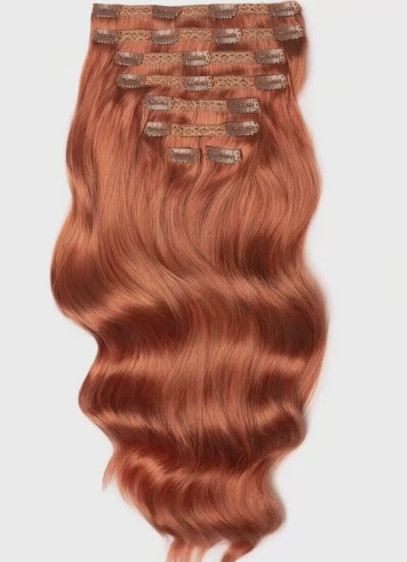 Add instant length, volume, and glamour with our premium 20 inch Full Volume Clip-In Hair Extensions in Dark Auburn Red. Crafted from 100% Remy human hair, these extensions are soft, silky, and blend beautifully with your natural hair for a flawless finish.