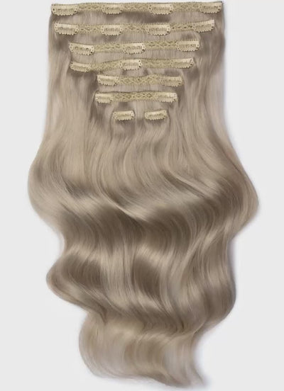 Add instant length, volume, and glamour with our premium 20 inch Full Volume Clip-In Hair Extensions in Silver. Crafted from 100% Remy human hair, these extensions are soft, silky, and blend beautifully with your natural hair for a flawless finish.