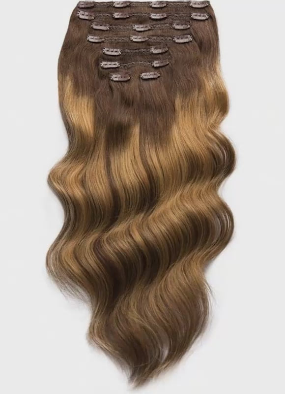 20 inch Full Volume Clip in Hair Extensions Dark & Light Brown Balayage
