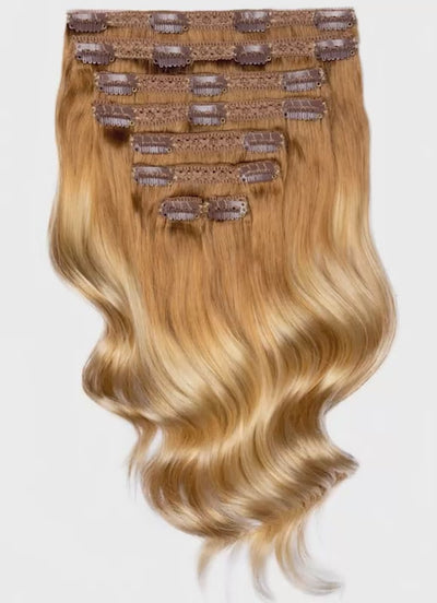 20 inch Full Volume Clip in Hair Extensions Ash Brown & Light Blonde Balayage