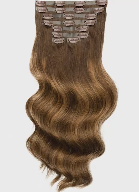 Classic Clip-In Hair Extensions use a traditional stitched fabric weft. While slightly thicker at the seam, they are extremely durable and offer excellent volume and grip, making them perfect for medium to thick hair types.
