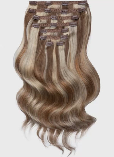 20 inch Ultimate Volume Clip in Hair Extensions in Brown & Blonde (Bronde) Balayage