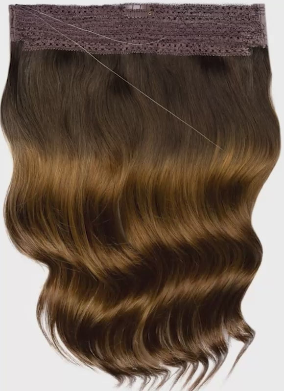 22 inch Invisible Wire Hair Extensions in Dark to Medium Brown Ombre