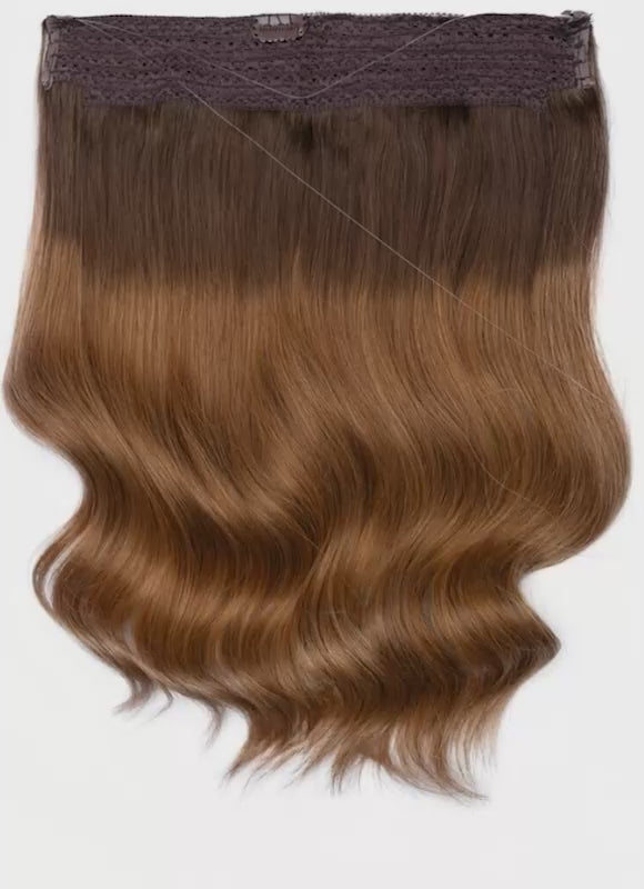 22 inch Invisible Wire Hair Extensions in Dark to Light Brown Ombre