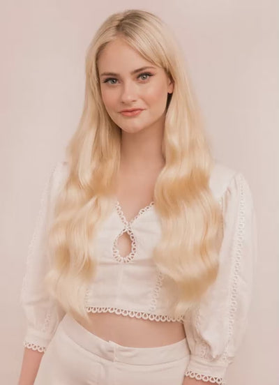 Take your look to the next level with our 24 inch Deluxe Clip-In Hair Extensions in Light Blonde. Crafted from the highest grade 100% genuine Remy human hair, these premium extensions provide luxurious length, volume, and a soft, silky finish that blends seamlessly with your natural hair.