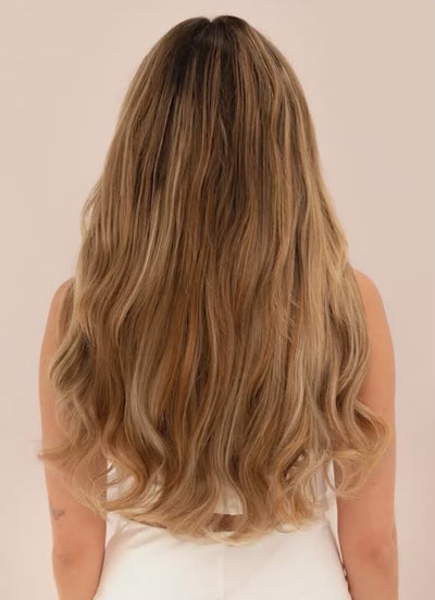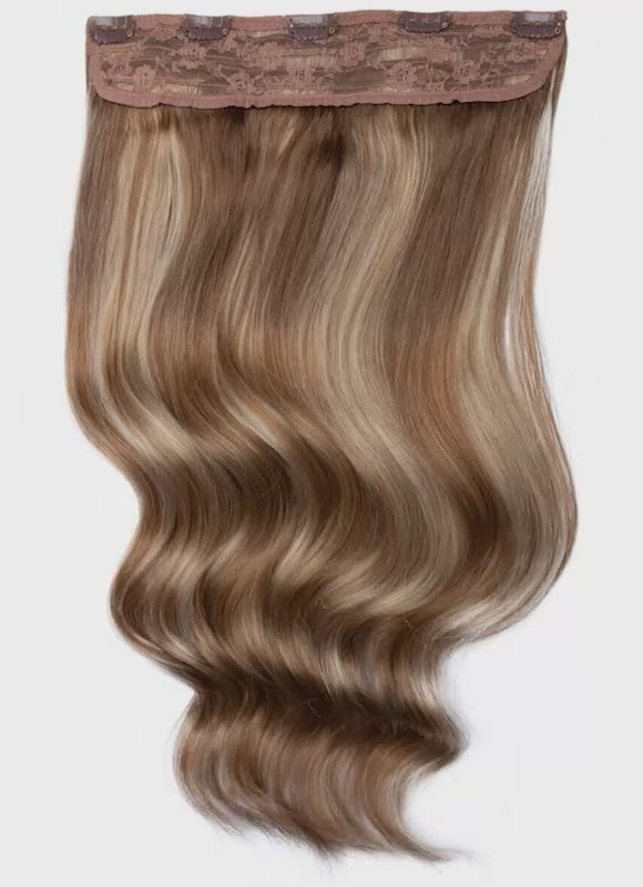 Want fuller, thicker hair in seconds? Our Clip-In One Piece Volumiser Hair Extensions in Brown & Blonde (Bronde) Balayage #F4A-4A8A613 are the perfect solution for adding instant volume and body — without the need for a full set of clip-in extensions.
